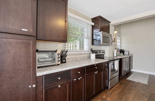Welcome! Our recently remodeled Haymount Hideaway is so comfy and relaxing, you’ll feel right at home. This detached guest house has an open floor plan, stylish furnishings and a secluded loft bedroom (please be aware, LOFT BEDROOM HAS A LOW CEILING). The spacious Hideaway is ideally located just a block away from the historic Haymount neighborhood, one mile from downtown Fayetteville and a quick 8 miles to Fort Bragg.