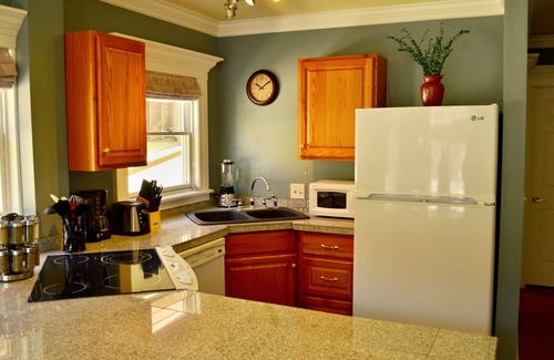 These apartments feature well-equipped kitchens with granite countertops, dishwasher, full laundry, Roku-equipped HD televisions, original artwork, king-size beds with memory foam-topped mattresses, jetted bathtubs, air conditioning, a deck or patio, free parking, and wifi.