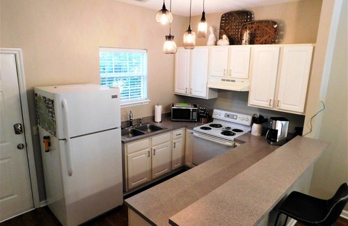 This 2 bedroom, 1 1/2 bath home features 2 bedrooms on the second floor, each with a queen bed. There is also a full bathroom on the second floor. There is a convenient half bathroom on the first floor. The first floor living room has a queen sized pull out sofa bed. The kitchen is amply stocked with all of the necessities to prepare a meal if you don't feel like going out.
