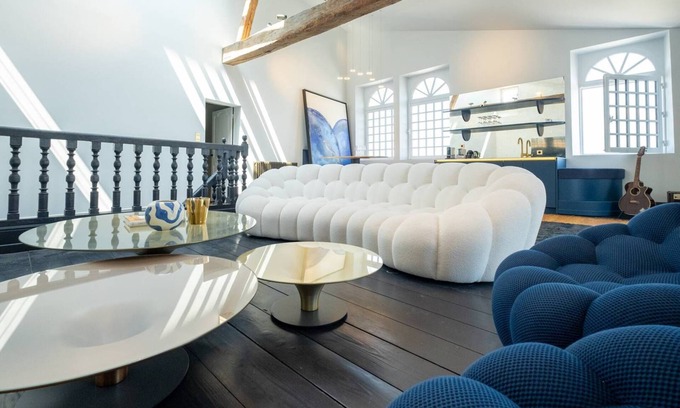 This historic two-stories home that used to belong to the paintor Chapelain Midy, located in the heart of Saint-Martin-de-Ré’s harbor, has been renovated with both elegance and boldness. Behind its classic façade lies a refined atmosphere that blends heritage architecture with a curated collection of contemporary art—all while watching the first boats gently enter the port.