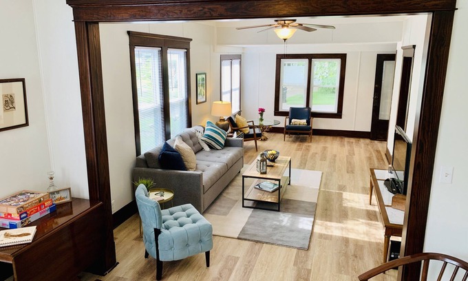 The Heartwood House<3 : Dwntwn Three Oaks, 2BR/2BA stands out as a perfect accommodation choice for your wedding stay. This charming bungalow combines character, comfort, and convenience, making it the ideal backdrop for your special occasion.