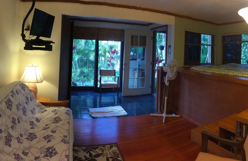 The deep silence and tranquility are unexpected at the Heavenly Valley Retreat. The studio apartment is located on a private street above the congestion of Honolulu bordering a tropical forest. A stream runs close by and the main road in the valley is above and away from our house so the dominate sounds in the neighborhood are singing birds and the trade winds blowing through the palm trees. It is the ideal place to rest and rejuvenate.