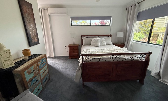 Arriving at the Heights you will be greeted with off street parking before making your way through your own private garden where you can dine/relax this leads to your own private entry & private suite, here you will find large bathroom and dressing room, bedroom with 45"TV ceiling fan block out blinds & Aircon, small Kitchenet with fridge microwave kettle & toaster to service your needs.