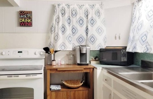 Cute & cozy two-bedroom apartment on the ground level of a single-family home. Private entrance. Includes a full kitchen with appliances and a private bathroom with a shower.