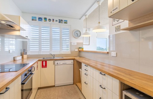 With premium air conditioning across split and reverse systems and ceiling fans, this exquisite holiday unit accommodates up to six guests in utter comfort and style.