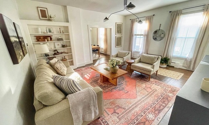 Step back in time while enjoying modern comforts in this beautifully remodeled 1890 home in the heart of Heritage Hill, Grand Rapids. Perfect for families, groups, or extended stays, this unique rental offers four spacious bedrooms, two full bathrooms, and two kitchens—ideal for larger groups or those who love extra space!