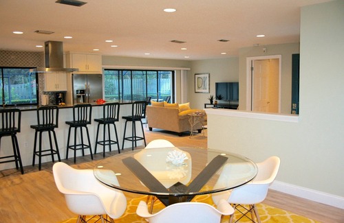 Enjoy the finer things in life at a slower pace. A fully remodeled contemporary home with private beach access & heated, screened pool. This (3) Bdrm (2) Bath home is fully updated and offers ample space for you and your family to enjoy. We make traveling to the Heron Hideaway simplified: a fully stocked kitchen with all of the modern amenities, fresh linens, beach toys, a new game table (pool, ping pong, hockey), wifi and flat screens, all within the safety of a gated community.