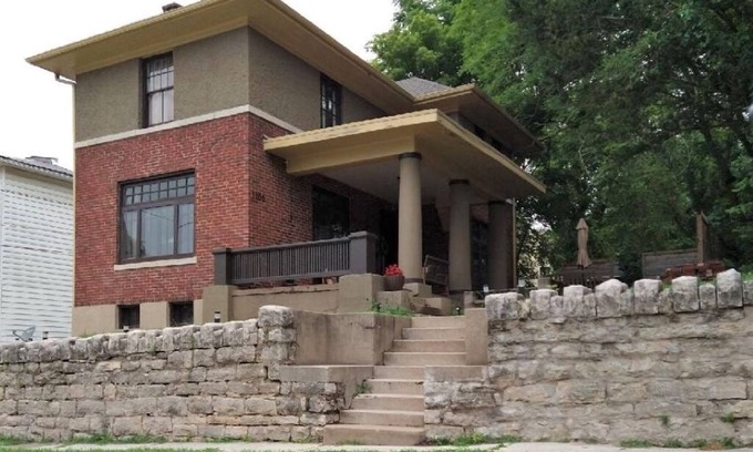 The Hickman-Bond House A Prairie style home by Disciple of Frank Lloyd Wright has 3 Bedrooms , 1 Bathroom, and max occupancy of 7 people. The minimum rental for this property is 1 nights, but this can change depending on the season you plan on staying. Previous guests have given good rated it, and VRBO labeled it a top-rated House because of the excellent services rendered by the owner or manager of this House, and has consistently provided great experiences for their guests. Most families or guests that use it recommend it to their friends and some of them are repeat guests. House has a friendly neighborhood, and the Hannibal has interesting places to visit. If you want to learn more about the House in Hannibal, such as places to visit and things to do nearby, you can check below to learn more.