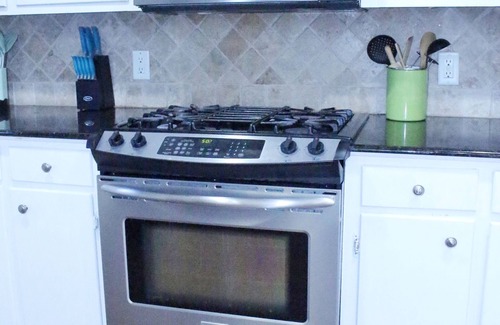 Large 4 bedroom, 3 bathroom home sits on a cul de sac in an established Sulphur neighborhood. The spacious home has a a huge living room with exposed beams. There's a fenced in back yard for the kiddos to play, and is fully stocked for anything you may need during your stay!