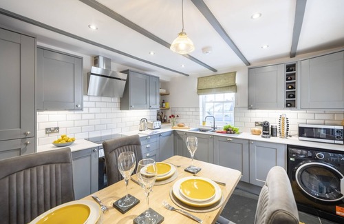 There's also a surprise up its sleeve…a fantastic garden to the back which has been cleverly landscaped to create a large, contemporary outdoor space that's ideal for fresh air dining and for spending time in the sunshine. Cooking is a joy in the home’s modern Shaker-style kitchen where ample worktop space and a range of appliances provide all that guests would need to rustle up a few home-style classics, while the breakfast bar invites morning gatherings where chats about the day’s plans can be shared over a coffee.
