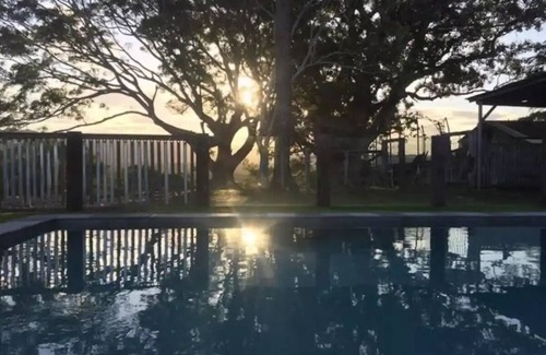 A Byron Bay secret hideaway. Rustic charm exudes from this historic, cosy, cottage. Comfortably sleeps 5 with kitchen and bathroom. Set on 12 acres, overlooking pastures. Amenities include saltwater pool, firepit and bbq area. Relax and unwind in the shade of ancient fig trees and watch the setting sun. A short 6 minute drive to Byron Bay beaches and town. Easy, short drives to all towns in the Shire. Close to the M1, Ballina and Gold Coast airport. A truly special place to stay.
