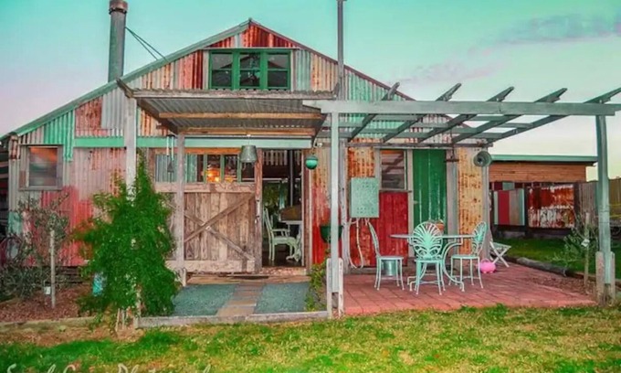 This was the original farmhouse over 100 years ago. It looks ramshackle but don't be mislead. Underneath the rustic exterior we've hidden a new roof, insulation and solid timber structure. Kitchen has a slow combustion stove and reverse cycle aircon. Comfortable beds and quality linen. Easy access to all amenities including the pool, bbq area and games room.