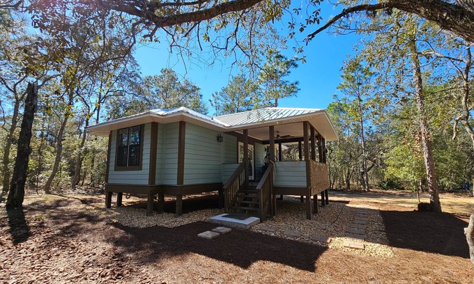 You'll enjoy wooded views with lots of lovely old oak trees and the Old Florida nostalgia that comes with chasing fire flies, curling up in the comfy egg chair, and stargazing, surrounded by nature.