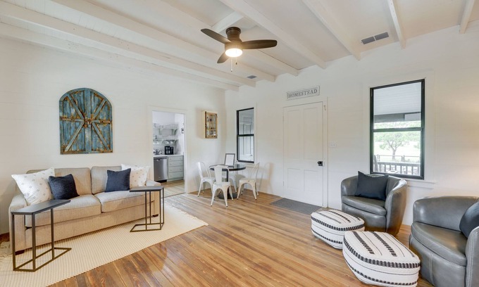 When you’re planning to take a Painted Churches tour, spend the afternoon at wineries, or simply indulge in some on-site amenities, this breathtaking 1888 Texas escape will do the trick. Fish in the catch-and-release pond, grill in the gazebo, splash in the wading pool, or swing on a deck — there’s plenty to enjoy with loved ones! Whether you’re driving out to dinner or utilizing the fully equipped kitchen, this 3-bedroom, 2-bath home named ‘The Hideout’ will help you do just that.