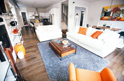 Designed with luxury in mind, this home features an array of top-notch amenities including five Samsung 4K LED TVs, cozy living spaces with gas fireplaces, and an expansive outdoor patio complete with a propane BBQ grill. The modern kitchen is fully stocked with everything needed for entertaining, from spices to kitchenware, ensuring you can host delightful receptions and gatherings. Each bedroom boasts Tempurpedic mattresses for a restful night's sleep, while additional entertainment options such as PS4 gaming and board games provide fun for everyone during downtime. There is also convenient parking for up to six cars, making arrival and departure effortless for your guests.