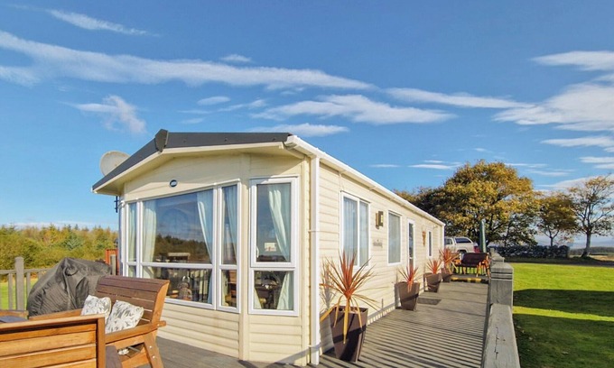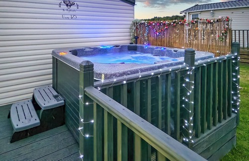 A delightful lodge set in a peaceful and quiet location on a family-friendly holiday park. Make the most of the tranquillity from the wonderful hot tub!. 1 step to entrance.