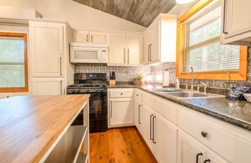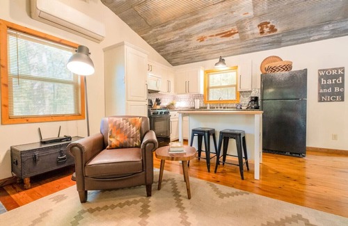 Bordered by Ozark National Forest, the Hiker Hut is perfect for those who want to get away from it all. Whether you chill by a fire in the natural stone fire pit, cozy up to the indoor fireplace or head out on the trails that are accessible just out the door you'll find the peace you crave. Just 15 minutes from town, the Hiker Hut is an nature lover's retreat.
