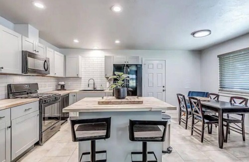 This family friendly home is just a couple blocks from downtown Edmond & outside of the backyard is a great park. The Hill House is close to the downtown shopping, eating & fun, plus we have a scavenger hunt to help you explore town. This 3 bed 2 bath home has been newly remodeled & has a single car garage for you to safely park your car. There's family friendly games & a smart TV in each room. Enjoy the back patio & watch your family play!