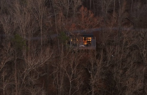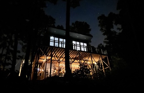 Perched atop a secluded hill, this unique treehouse offers stunning mountain and nature views. A one-of-a-kind getaway with ample outdoor space, it features a master bedroom with expansive windows for stargazing. Sleep comfortably with a king bed, bunk beds, and a queen sofa. Enjoy WiFi, heated bathroom floors, & free Tesla EV charging. The clubhouse boasts an Olympic pool, snack bar, restaurant & bar for the complete retreat experience.