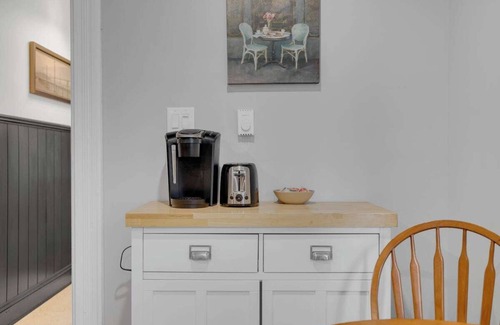 The recently refreshed kitchen is well equipped with a fair amount of counter space and great lighting.