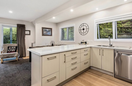 Everything has been well considered at this tastefully presented house - relax in comfort or make the most of the great facilities provided... There are 6 quality bikes, snow sleds, petanque/tennis/badminton/cricket/golf and gold-panning equipment for the Arrow River next door as well as river boogie boards! There's even a spa setup for you to relax and unwind.