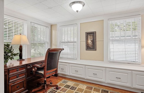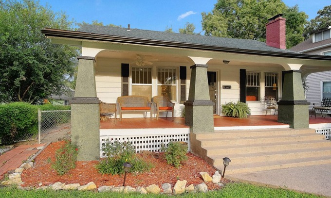 Treat yourself to an experience in this historic home that has character and charm in every room. Unwind on the front porch in a quiet neighborhood. Relax in front of the electric fireplace or in the whirlpool type tub. Spacious office with high speed internet. Large screen TV in living room. Second TV in master bedroom with Hulu, Disney+ and ESPN+ at no extra charge to you!