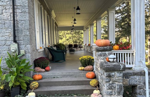 For groups considering fall football season weekends, the Manor will be beautifully decorated for the fall season. Guests can hike and wander below the property along the stream. Reservation does not include fly fishing access, however guests can inquire and add this on, when here.