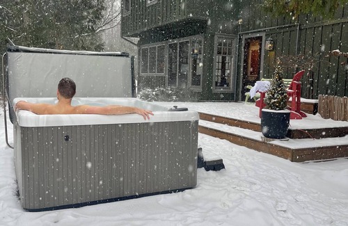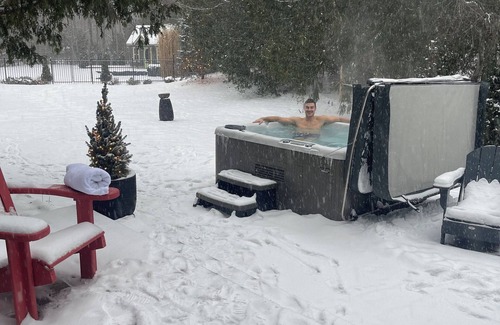 Warm and inviting Large Log Cabin , privately nestled in the Heart of Hockley Valley and situated across from the Nottawasaga River. Cabin Features 5 Bedroom’s and 4 bathrooms. Equipped with all season amenities, Hot Tub, waterfall pool, Large Bon Fire pit (wood supplied) BBQ, and propane provided , Close to many quaint restaurants , 1 minute drive to Hockley golf , ski , and Adamo Winery!! and walking distance for Hiking Bruce Trail system. As an extra plus for tennis enthusiasts , we can provide guest passes at our Mono tennis courts for your use. Home features a Massive stone fireplace floor to cathedral ceiling, original Pine plank floors, modern kitchen open concept, Large sun room, with large screen TV, and cozy game room pub. We have table tennis in the in the basement for added indoor fun !! We are available for winter 3-4 month rentals as well , please inquire if interested, as price will be per month. Dogs are Welcomed !