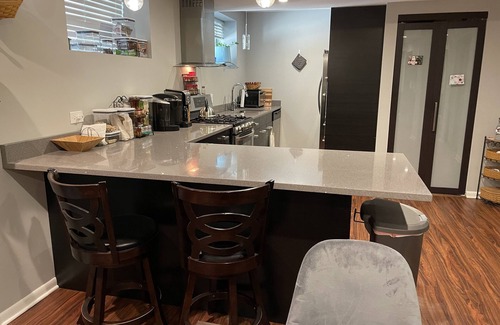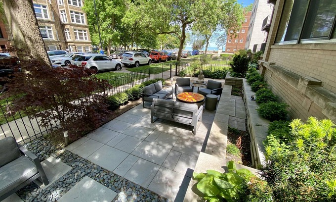 If you enjoy the holidays, this is the place to be! This amazing property is perfect at any time of the year; however, if you are traveling between mid September - early January, you will be welcomed by a festive holiday display on the front exterior the property. The space itself offers 2 bedrooms and 2 amazing bathrooms with higher end finishes. Beautiful modern upgrades throughout. Large kitchen with quartz countertops, which provides seating for 4. The building has a shared large patio with lake views in the front the building. Bath 1 has 4 body sprays and a powerful rain head and Bath 2 has a jetted bathtub/shower combo. In unit laundry & supplies. Walking distance to bars, restaurants, Starbucks, Loyola and the Red line train station. On site garage parking for 1 small to mid sized car is avail. for an addl. $25 daily fee; however, you must reserve at booking. If your car is greater than 200” in length, please reach out to host well in advance to confirm if your vehicle will fit. We have access to a second garage space that is slightly bigger; however, the space gets booked up quickly, so you must confirm well in advance. For those who have larger pick up trucks, you will likely have a difficult time finding a place to park, as Chicago is dense and parking is limited; however, please reach out to the host and she will check to see if there are alternative parking options available. Exterior security cameras are present at the property. The camera locations are (2) in the front of the building, (2) on the east side, (1) on the west side of the building and (2) in the alley on the garage. The front door intercom also has a camera with audio capacity built in to the intercom system. There are no cameras in the interior space.