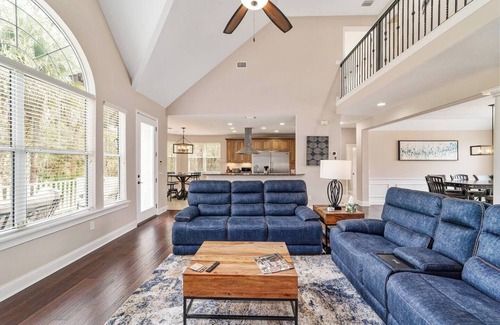 This spacious 5 bedroom, 3 1/2 bathroom home is conveniently located near downtown Ocala and the World Equestrian Center. It has a generous amount of space. The property is equipped with modern amenities, making it the perfect home away from home. The interior has comfortable furnishings, giving it a warm and inviting atmosphere. With plenty of bedrooms, bathrooms and living spaces, this house is great for big groups and families. Enjoy your travel experience in this family-friendly dwelling. There are five bedrooms. Primary has a King Bed, Bedroom 2 - Upper Level has Full Size Bed. Bedroom 3 - Upper Level has twin bunk beds. Bedroom 4 - Lower Level has Queen Bed. Bedroom 5 - Lower Level has Full Size Bed. There is a large room over the garage which will eventually be used as a recreation room. It is not ready yet, however guests do have access. Guest will be able to access the whole house minus a couple of closets.