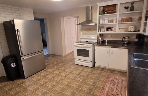 This home is part of an original settlers' 1800's family homestead and has been in the same family for generations. The comfy living room features plenty of space and an ample sitting area, an electric fireplace, a smart HD 42” screen and hi-speed fiber optic internet!. The kitchen is fully stocked with everything you need to prepare meals or enjoy your takeout at the large adjacent dining area table. The coffee bar features a Keurig w/assorted k-cups, and flavored syrups. The house is equipped with a full laundry area with a wash tub and supplies. If you need to do some remote work while on vacation we’ve got you covered with a work area and desk. With a main floor bedroom and three bedrooms upstairs, the house is perfect to accommodate up to eight guests!
