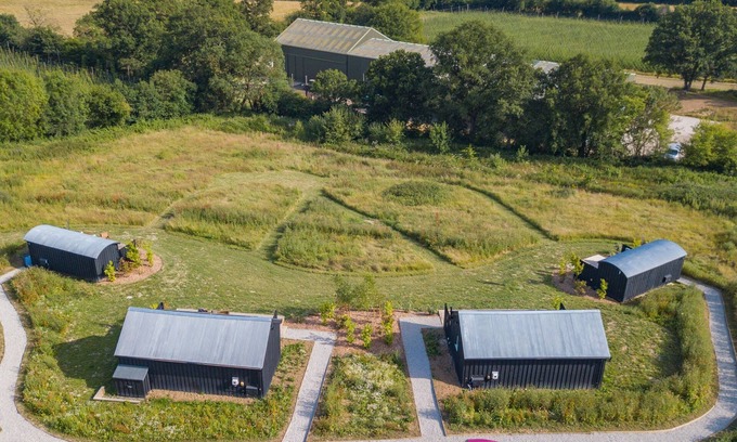 The cabins are located on a working hop farm and brewery, deliveries and machinery such as tractors may be heard.