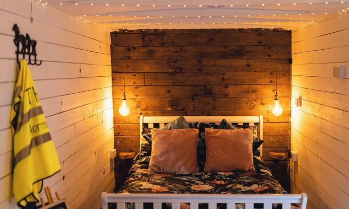 The Horrrsebox Tinyhouse🐎nQuirky romantic Tiny House with Hottub In Ireland is located in County Meath. The Horrrsebox Tinyhouse🐎nQuirky romantic Tiny House with Hottub In Ireland provides accommodation, featuring Bedding/Linens, Fireplace/Heating, Barbecue/Outdoor Cooking, among other amenities. This Cabin features Bedding/Linens, Fireplace/Heating, Barbecue/Outdoor Cooking, to make your stay a comfortable one.