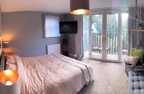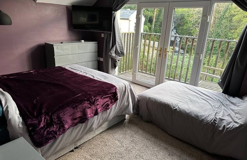 Located just south of the center of the island, this comfortable and spacious retreat boasts a huge wood burning hot tub (hot when you arrive), gym, and firepit in the secluded social area next to the river at the rear. With the TT course half a mile north, and shops and pub 1/4 mile south, its the perfect retreat from watching the racing or exploring the island.