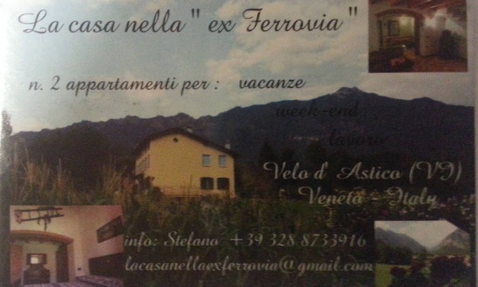 The HOUSE IN THE RAILWAY of Velo D'ASTRICO is located in the thematic area "PEDEMONTANA VENETA E COLLI", at the crossing of the valleys of the Stico and of Posina in the middle of the prealps Venete at about 350 mt of altitude and 1 km from the center of the village On the slopes of the curious Monte Priaforà. Locations easily reachable: Venice, Padua, Verona, Trento, Rovereto, Lake Garda, Gardaland ... The Place is ideal for those who want to rediscover the charm of nature and the walks in the open air. Excellent for families, the home combines hospitality with the rural world and is centrally located for visiting and rediscovering places full of great historical events (Pasubio, Ortigara, Cengio, Zebio ...). Along the cycle track Piovene Rocchette-Arsiero (old railway) in a stretch that can be traversed by motor vehicles only by very few frontists and owners of the Funds. Both in summer and winter you will discover the taste of tranquility. The house has been recently renovated and is surrounded by mountains (starting from south in clockwise direction: Hermes Hermes, Summano, Collar of Velo, Priaforas, Caviojo, Cimone, Cengio with the foreground of the Granatieri, Pau ', Bregonze hills). You can find a very large green space, grazing cows, cockroaches, a very suggestive beach at Pria'Park in front of Arsiero (you can get in 5 minutes by car or take a 30/40 minute long walk The Astico torrent, Montanina's fishing boat on a private pond or at Rio Freddo di Arsiero where wonderful trails for Toraro or Tonezza go for a walk. WI-FI free in Piazza Velo and Arsiero. Is fully equipped with all necessary, 4-burner hob, fridge, oven, microwave, and crockery to find: 1 cot, chairs and garden table, vacuum cleaner, gas heating, Pellet Stove, wall safe, 3 bicycles, maps of hiking trails and MB hiking trails, self service h24 milk and dairy products at 50 mt, renowned restaurant at 100 mt. THE HOUSE IN THE RAILWAY is composed of: basement: common garage with another apartment, laundry with shower and Toilet. Ground floor: kitchen and living room. First Floor: Bathroom with bidet and WC, double bedroom and bunk bed room. Attic floor: Room. Travel time from HOUSE IN RAILWAY: Piovene Rocchette motorway exit (A31) 10 min, Arsiero 2 min, Tonezza del Cimone 20 min. Fiorentini Plateau 30 min. Folgaria (TN) 40 min. Trento 70 min, Vicenza 40 min, Asiago plateau 25 min .. Asiago 40 min. Posin 20 min. Monte Pasubio 40 min. Thiene 20 min Marostica 40 min Schio 20 min. Bassano del Grappa 45 min. At the first Vs contact we will send you links to descriptive sites of places, cultural events, food and wine tourism etc. An absolutely healthy holiday to rejuvenate body and soul.