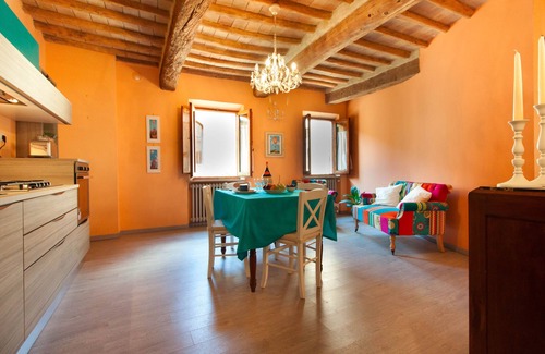 This delightful apartment completely renovated and furnished with extreme care, is located in the heart of San Gimignano, a few steps from the Duomo and the famous Piazza della Cisterna. It consists of a large open space divided between living room-kitchen, bathroom and bedroom.