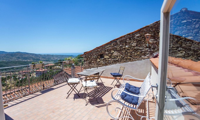 The house has been recently and completely renovated with quality materials and is spread over 2 levels and is as follows: balcony with separate entrance, large living room with kitchenette, 2 bedrooms, two bathrooms and a comfortable loft 20 sqm with sofa bed. The property is completed by a splendid 16 sqm terrace with a fantastic view of the sea and surrounding valley as well as the medieval tower of the country. The house is equipped with every comfort and can accommodate up to 4 people.
