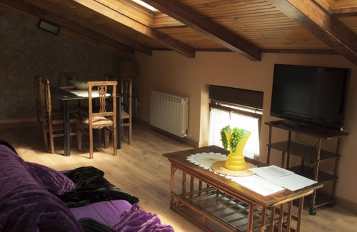 The living room has a 32 ”flat screen TV, dining table, extra sofa bed, fitted kitchen with ceramic hobs, extractor hood fridge and high-end microwave oven. Naturally, it has the essentials for cooking, crockery and cutlery. It has heating, hot water and Wifi. . They also have bed and bath linen cleaning and toilet material, iron, hairdryer and courtesy details that will surprise you.