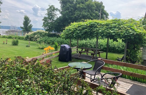 Your section of +- 9000 ft/square (+-836m/square) includes in summer season (May to October); a dining area under the vines near the house with a barbecue. A relaxation area accessible all year round on the bank of the river with a breathtaking view where you can enjoy a three-seater swing under the trees, a round picnic table with benches for aperitifs or meals. With the possibility of making fires under the stars. From May to October, you will have access to a small outdoor fireplace for small campfires.
