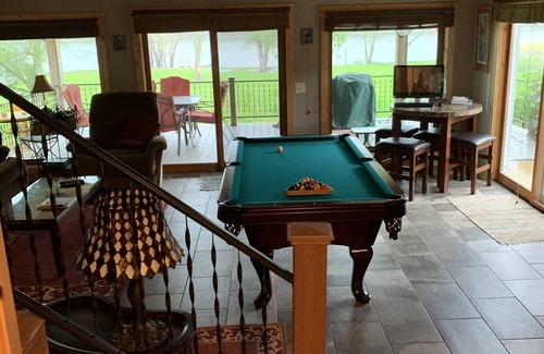 The mighty Mississippi , beautiful Effigy Mounds, and Yellow River State Forest all in your backyard. A pool table greets you in the living room, a large kitchen, and the prettiest views around. Ducks, geese, birds are some of the wildlife you will see with a view from every window in the cabin. Drop in your fishing line, pick up that good book, and just relax........