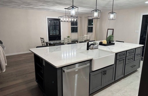 - Quiet new farmhouse, sleeps 8-10 with huge kitchen and side yard, & gas grill!