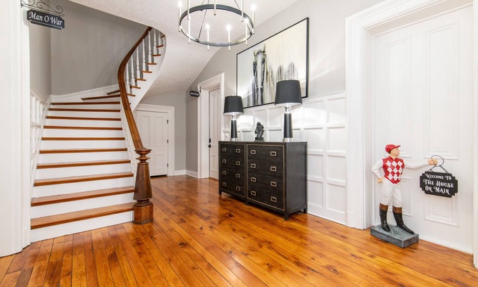 Welcome to The House On Main, a stunning historic home in the heart of Georgetown, Kentucky, perfect for accommodating weddings with up to 16 guests. This beautifully restored 5,000 square foot house, originally built in 1872, exudes charm and elegance with its grand two-story staircase, 12-foot ceilings, and gorgeous hardwood heart pine floors. Hosting your wedding here will create an unforgettable experience for you and your loved ones, as you celebrate together in this unique setting that brings history and romance to life.