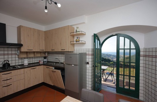 Adiacente vi è la cucina completa e zona pranzo con vista sul Golfo del Tigullio.