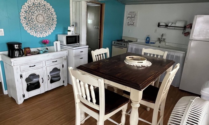 The Hummingbird cottage has 2 bedrooms - 1 full size bed and 1 bunk with a full-size bottom, a single top, and a pull-out sofa. It has 1 bathroom, a kitchen with a range, a refrigerator, and a small porch. There is a pavilion for outside dining/picnics. It is shared with the other 4 tiny cottages and is equipped with two charcoal grills (charcoal not provided) and a propane grill (propane provided). There are two shared fire rings at lakefront and there is parking on-site for 1 vehicle only. There is no TV, but we have Wi-Fi. There is no central heating, but the cottage has an electric radiator-type heater in each bedroom and a wall heater in the common room. There is no air conditioning, but each cottage has a whole house fan, and we also provide circulating fans. The Pier is equipped with a potable water supply. It has an on-site PA Department of Environmental Protection approved water treatment system. Our water is chlorinated and softened and tested monthly.