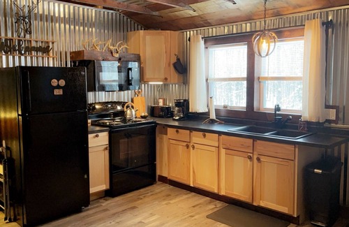 Come enjoy a peaceful getaway in the woods in this unique cabin. Furnished with things that make those who love hunting and the outdoors (and those that don’t :D) feel right at home.