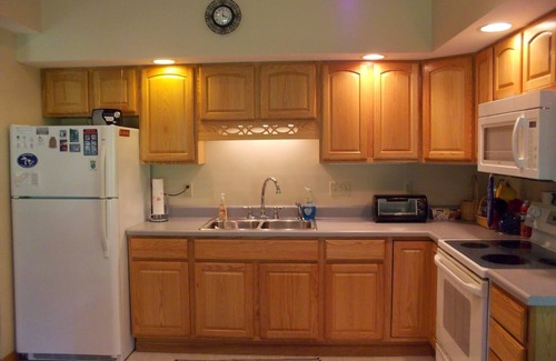 KITCHEN: Enjoy a full kitchen at The Hutch. The kitchen features a full-size refrigerator/freezer, stove, oven, and microwave; you'll find the cabinets and drawers stocked with pots, pans, dishes, kitchen tools, etc. Stay warm with our heat in winter or cool off in the air conditioning during the summer. You'll also enjoy high-speed Wifi Internet.