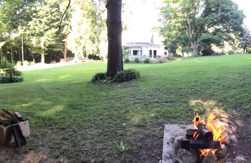 Enjoy the beautiful bay windows at The Hutch. Inside the apartment, two big bay windows give lovely views overlooking the woods and gardens. Outside, there's a large lawn with a fire ring and firewood in the woods. We happily prepare campfires or the sauna for all guests.