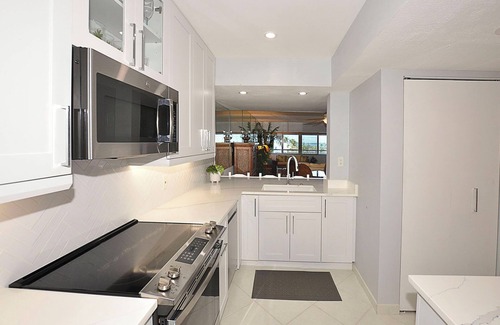 This rental residence is on the third floor of the North Oceanside building, and inclludes an assigned parking space under the building for your convenience. The home is a spacious 2-bedroom, 2-full bathroom residence that has been beautifully renovated with diagonal cut ceramic tile flooring in the living areas, crown molding, decorative ceiling fans, custom lighting, granite counter tops in the kitchen and bathrooms, and furnished with quality, comfortable furniture. A vacation here provides a relaxing retreat, surrounded with on-site recreation opportunities for swimming, sunning, beach adventure, tennis, pickle-ball, and more.