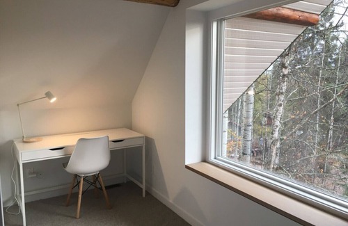 If you like design, you will really appreciate this space! AJ is a designer/builder and has milled the fir floors from fir beetle-kill wood logged out of the Pidherny forest behind the house. The floors are soap finished in the Danish style (a nod to Ingrid's Danish heritage). We also have several pieces of designer furniture by Niels Bendtsen (Bensen Furniture) as well as decor details by local northern artists.