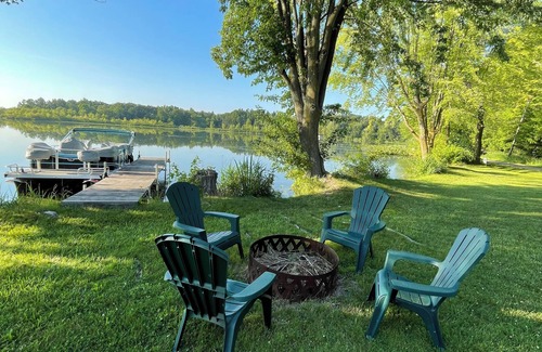 A 20-foot deck spans the width of the house facing the lake, and there’s a fire pit in the lawn next to the lake. Bluegill and crappe are found close to shore. Wild turkeys and deer are known to frequent the area, which is popular with birdwatchers. There are blue herons, sand hill cranes, cormorants, grebes, swans, geese, red wing blackbirds, woodpeckers, songbirds of all sorts, catbirds, and if you're lucky, you may see a bald eagle circling over head. Enjoy an evening by the shore, watching the water and the fireflies, and possibly hearing an owl hooting in the woods across the street.